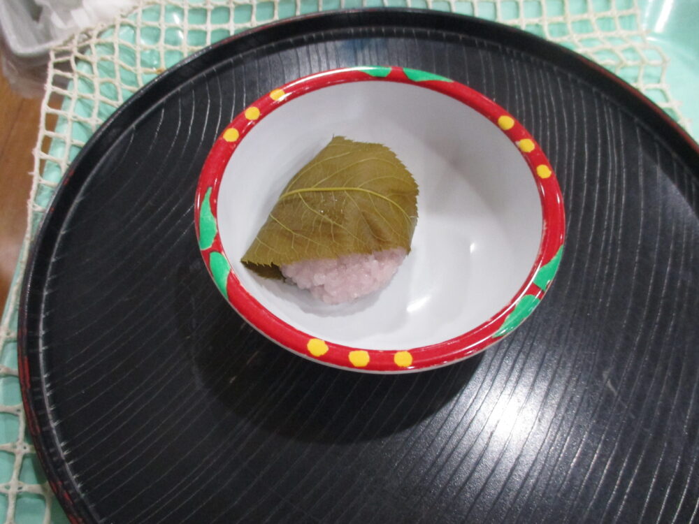 おやつには桜餅と甘酒♪