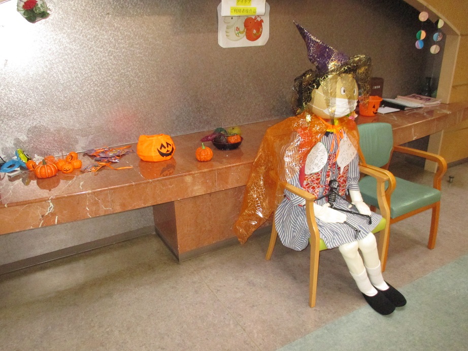 10月ということで、ハロウィンの飾りつけもしております!(中央の人形はデイケアスタッフの作品です)